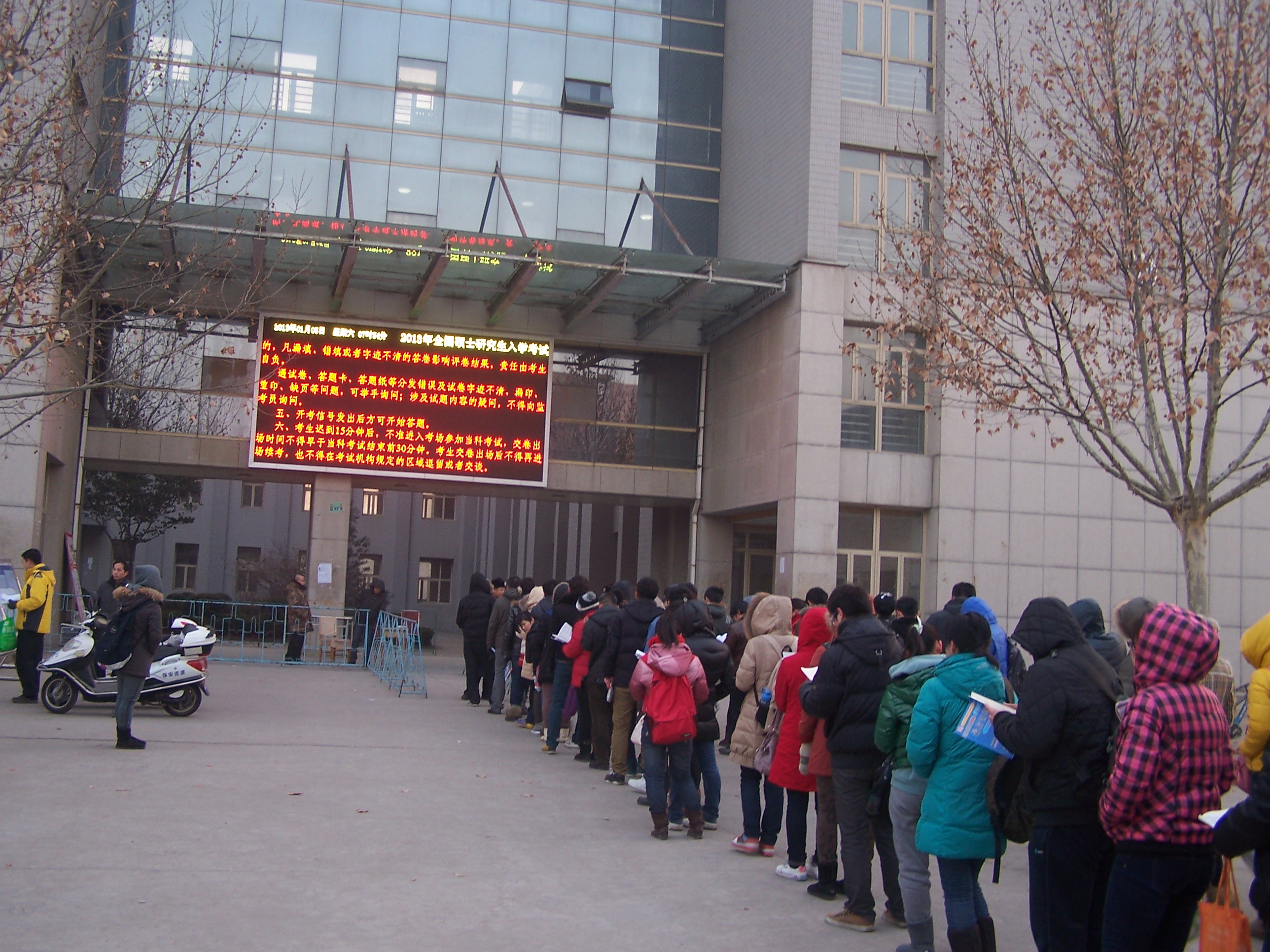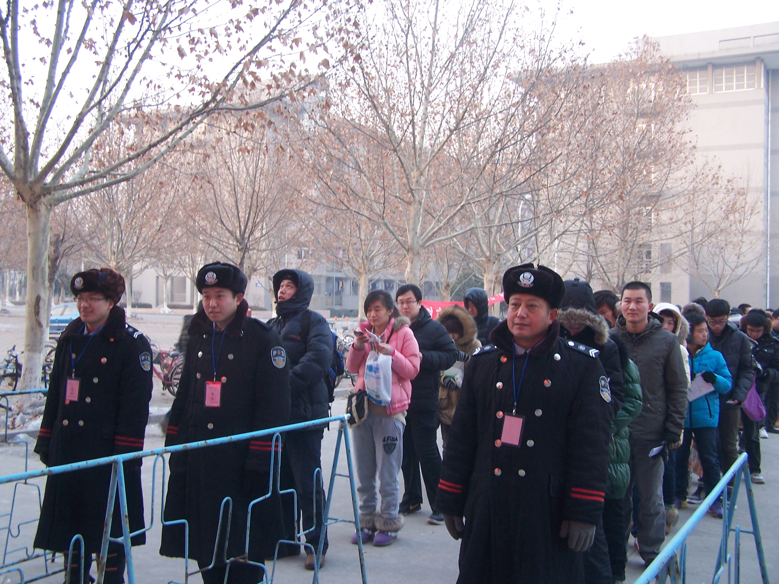 考试期间,队员冒着零下十几度的严寒,坚守岗位,认真负责,以高度的警惕性和严明的纪律性,认真做好保卫工作,确保了整个考试过程的绝对安全,为考生营造了一个公平竞争的良好环境。