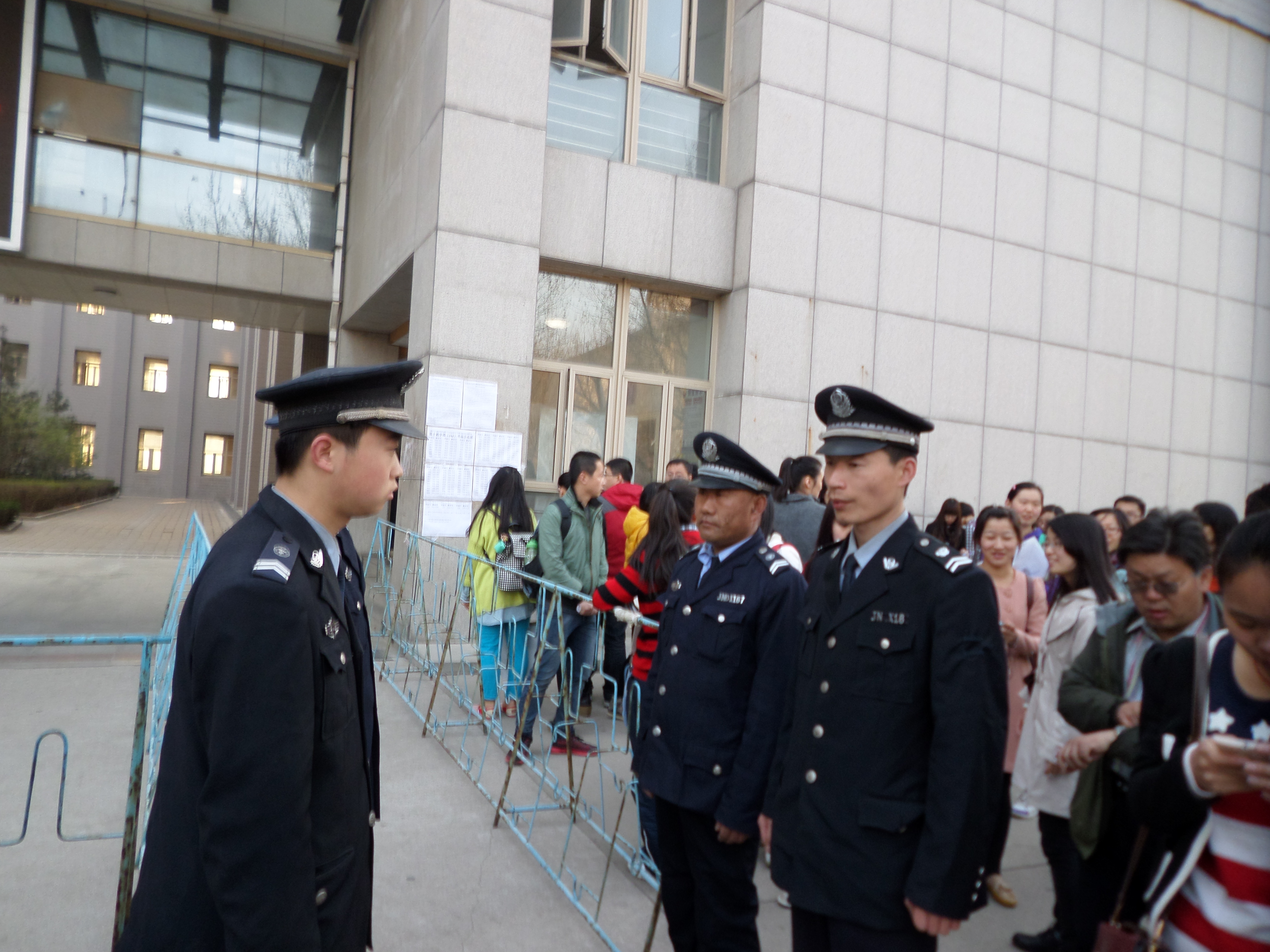 2014年山东省选调生考试于3月23日在我校举行,参考人数达8200余人,为保证试卷安全和考试的顺利进行,安全管理处派出了保卫干部、职工和校卫队员30余人,分别担负考点教学楼安保、考点周边交通疏导、考点及周边巡逻等多项任务。由于分工明确、组织有力,考试过程中有条不紊地进行,为考生营造一个良好交通安全环境,圆满完成了考试的安保工作。