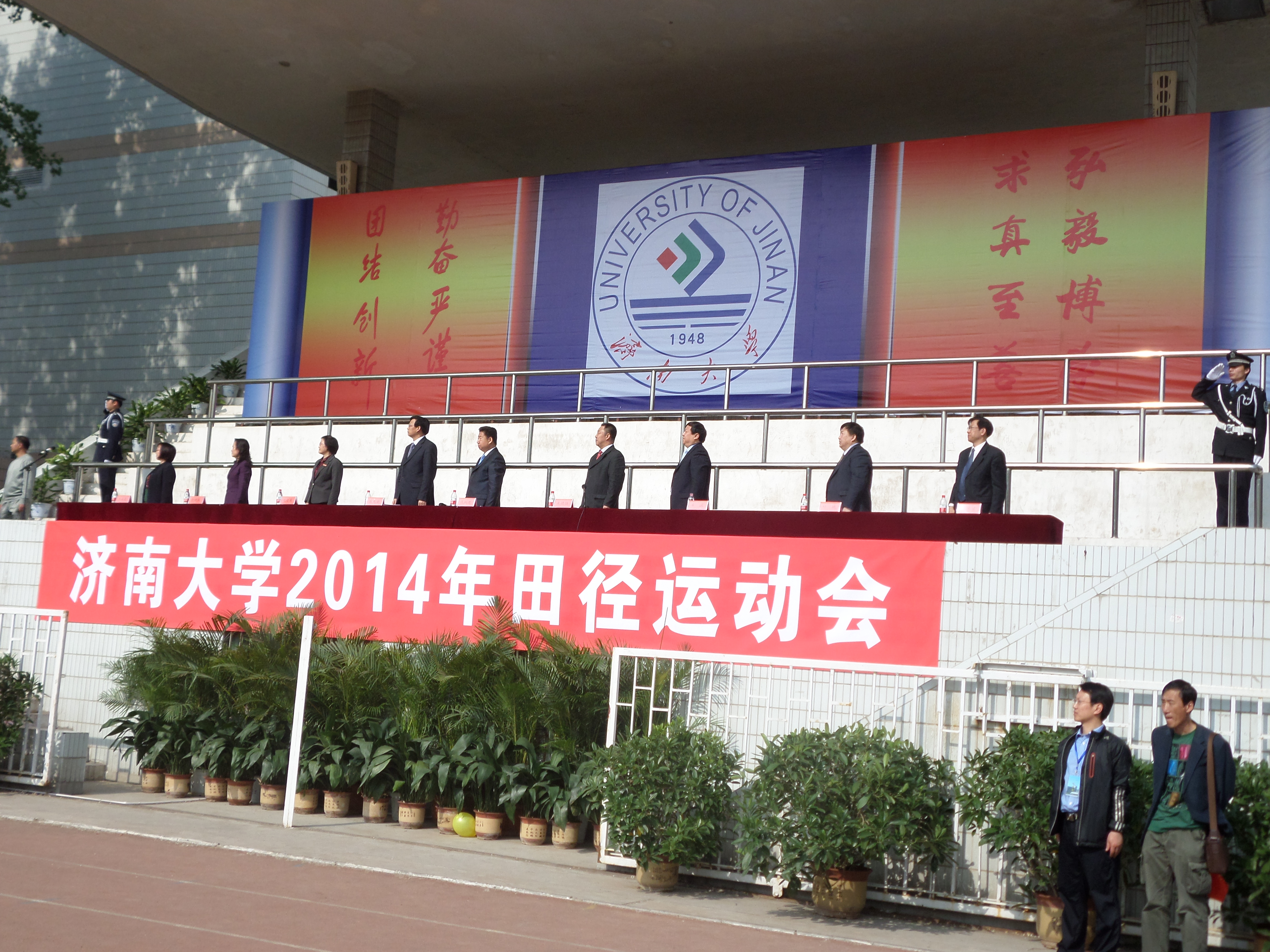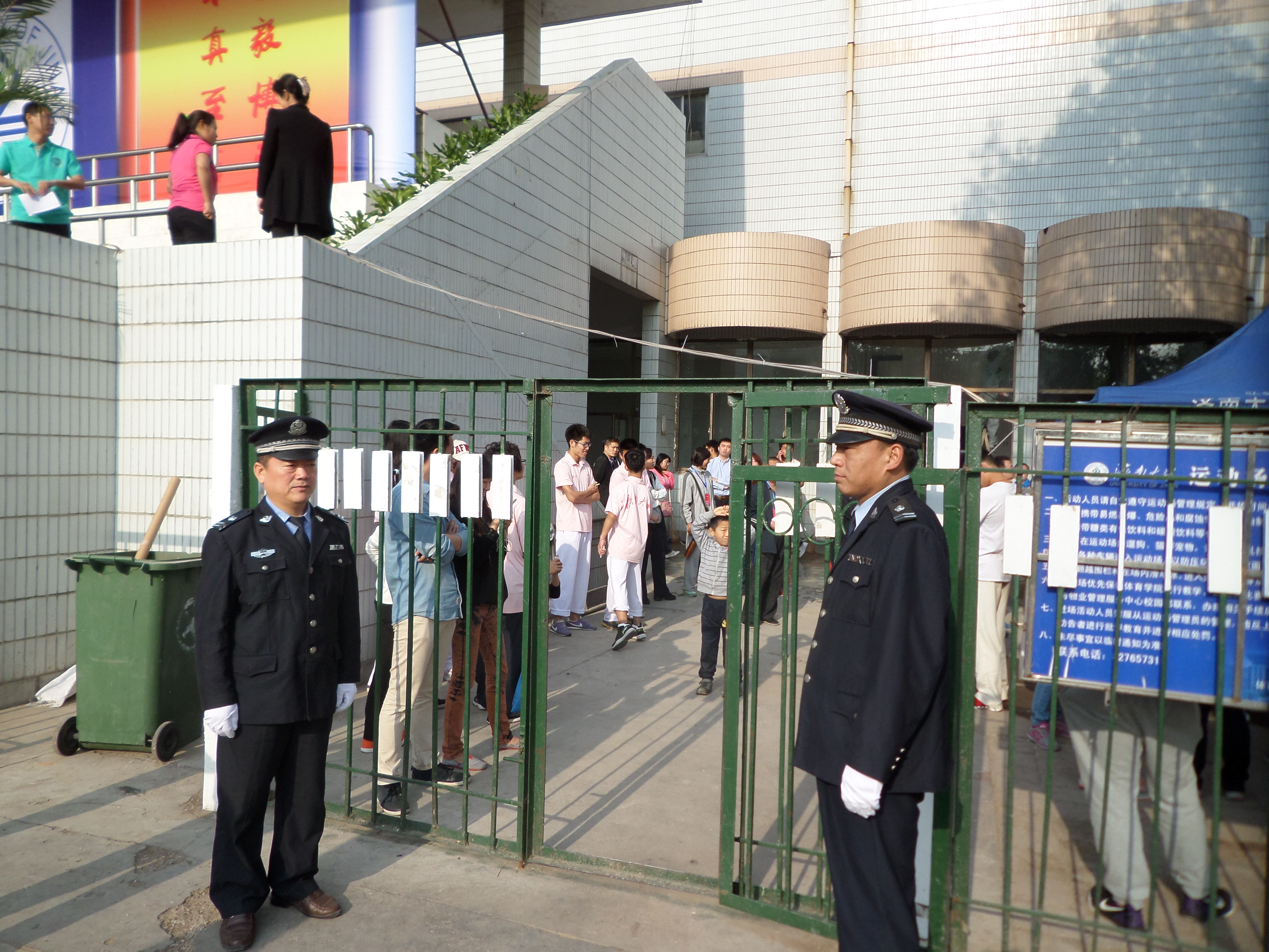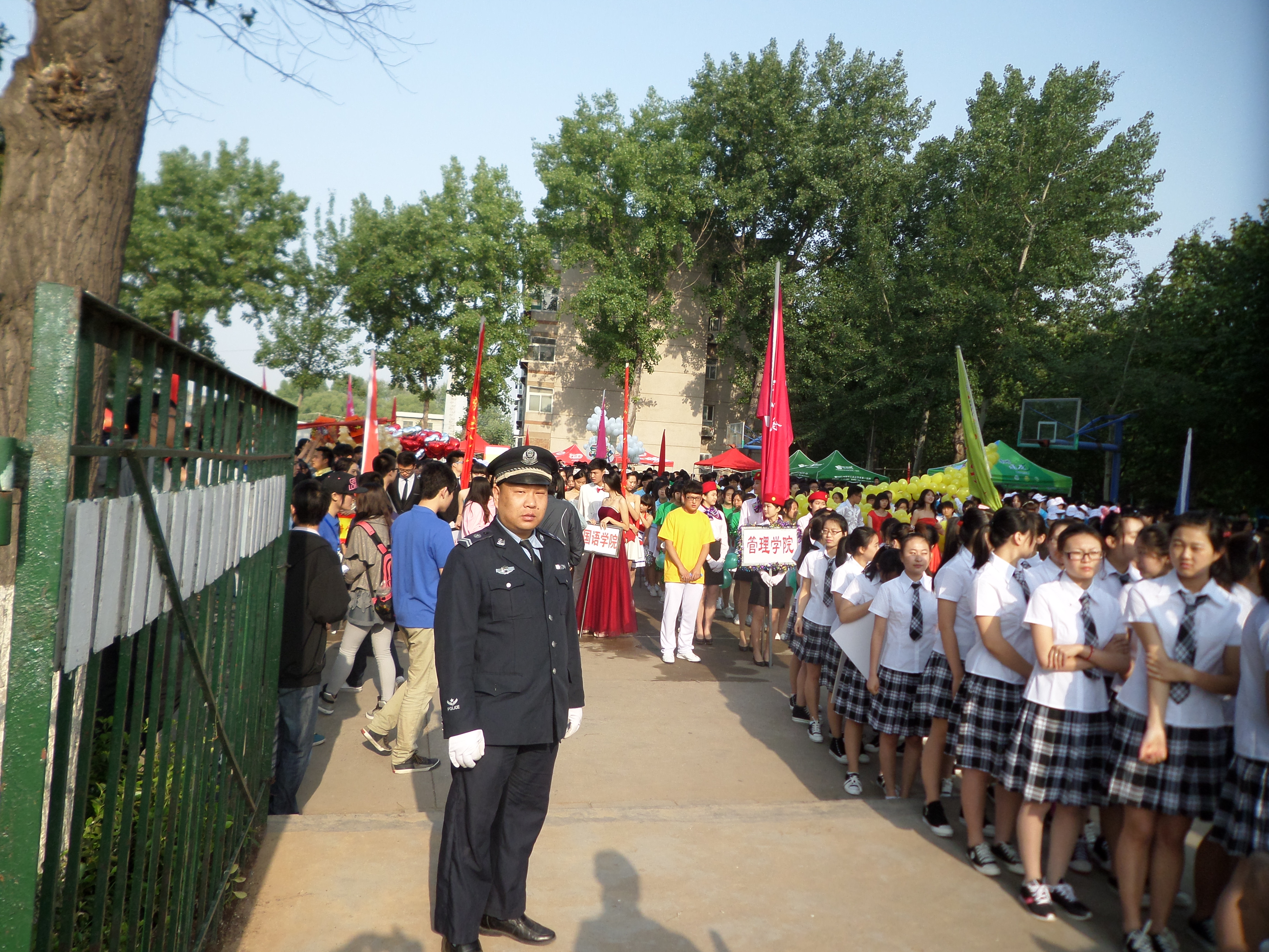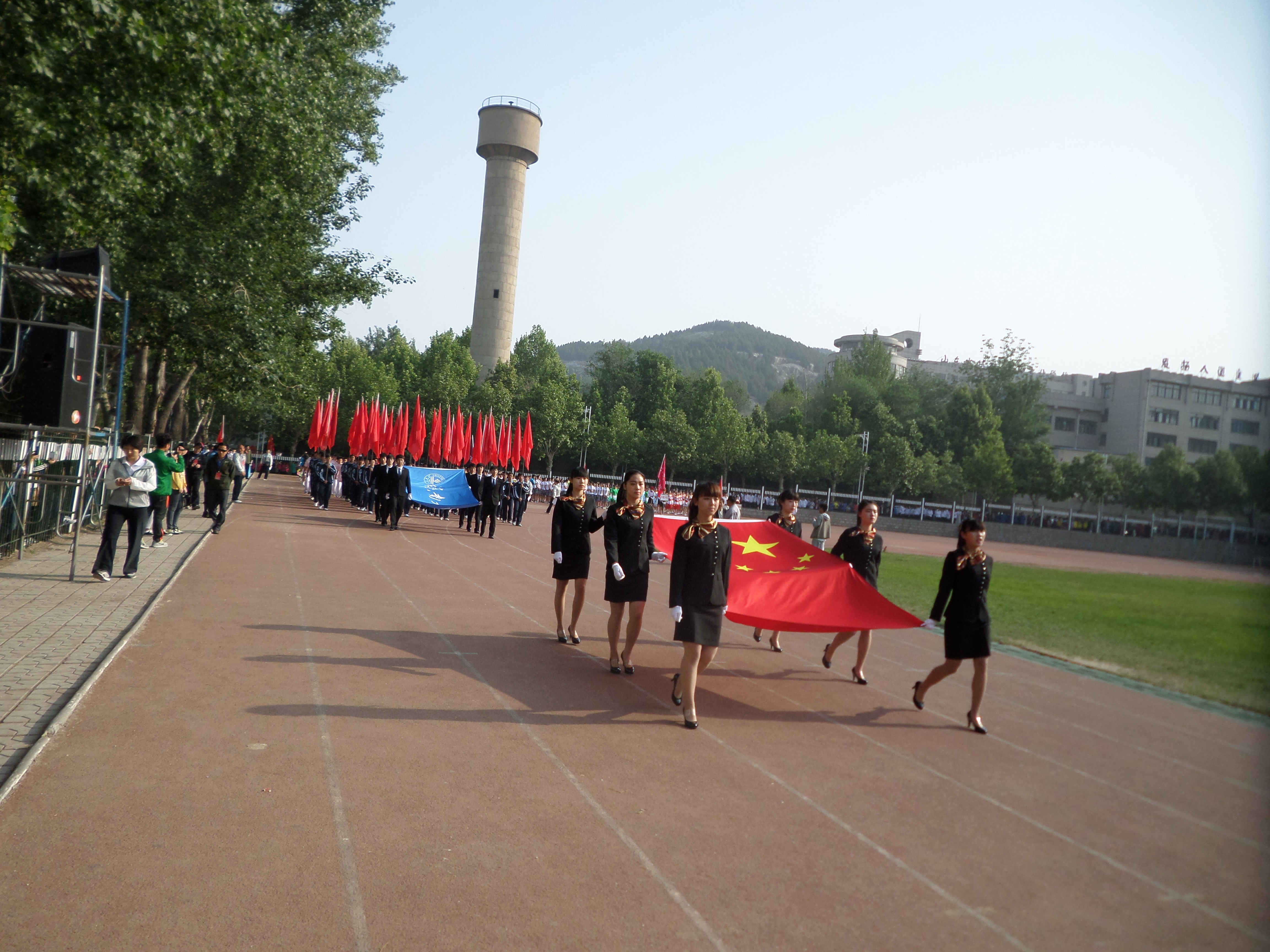 我校2014年田径运动会于4月29日至30日在中心校区田径场举行。为确保运动会的顺利进行,安全管理处根据学校体育运动委员会的要求,提前制定了详细的安保方案,成立了以处长丁立波为组长的安全领导小组,抽调精干的安保队伍,对场地秩序、周边秩序进行治安巡逻,确保了运动会期间的安全文明有序。