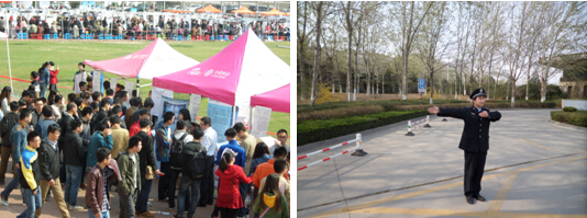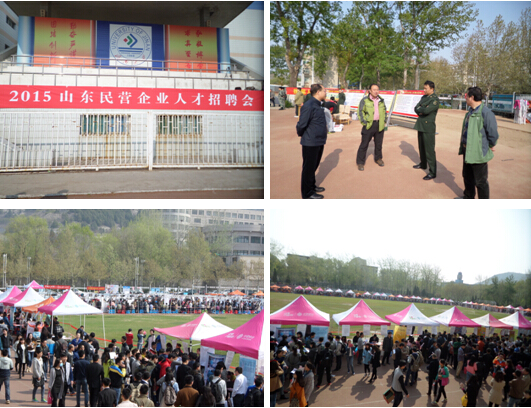 4月11日、12日,由山东省委统战部、山东省人力资源和社会保障厅、山东省工商业联合会主办的山东省2015年春季高校毕业生服务省会城市经济圈专场暨2015山东民营企业人才招聘会,以及由济南市人力资源和社会保障局主办的2015“济南都市圈”(1+6)高校毕业生供需见面会在我校中心校区田径运动场举行。此次就业双选会规模大,参与招聘的单位多,参加应聘的学生大大超过往年人数。为切实做好就业双选会的安保工作,安全管理处事先制定详细的安保方案,明确每个人的工作岗位和要求,全处调集精干校卫队员及保安40余人,加强对场地的设备的看管、校园内的交通指挥和会场内巡逻等工作,使招聘会期间秩序良好,受到了组织单位和广大学生的一致好评。