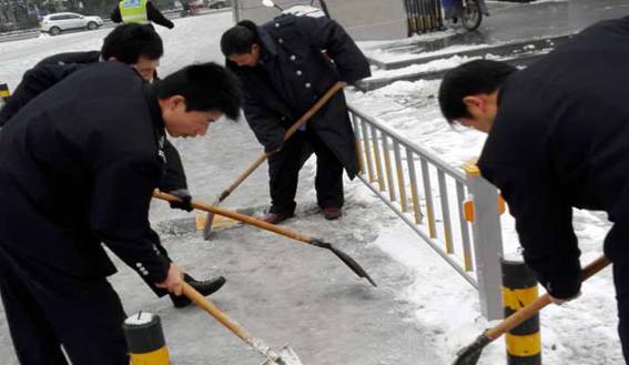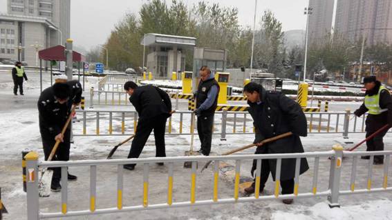 11月24日,齐鲁大地,普降大雪,寒风凛冽,雪花飞舞,为尽快消除大雪给师生学习、生活造成的影响,确保师生在校的安全和便利。25日早晨,yl23455永利集团安全管理处全体校卫队员不畏天寒地冻,用铁锹铲除各大门口的冰雪,干得热火朝天。经过近二个小时的紧张劳动,消除了门口由于下雪结冰带来的安全隐患。