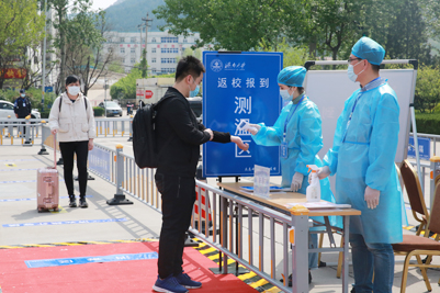 此次疫情防控应急处置演练共设置了学生返校进入校门检测查验、入住学生公寓、食堂送餐、图书馆学习等场景,学校分别在各相关场所设置了回形隔离等待通道、醒目标识和留观点,并组织开展了相关场景的正常流程演练和突发情况的应急处置演练。