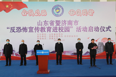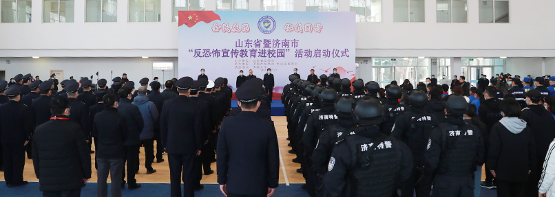12月27日上午,山东省暨济南市“反恐怖宣传教育进校园”活动启动仪式在我校举行。副省长、省公安厅厅长、省反恐怖工作领导小组副组长范华平出席并宣布宣传活动启动。省委宣传部副部长魏长民,学校党委书记徐景颜,省公安厅副厅长、省反恐办主任修潍青,济南市副市长、市公安局局长、市反恐怖工作领导小组副组长吴德生,市中区区委书记韩永军,学校副校长杨景波、副校长张勇出席活动。省教育厅和济南市有关反恐成员单位负责同志,市公安局相关警种和各分、县局负责同志,学校师生代表、志愿者、应急救援力量等共约300余人参加活动。济南市委常委、政法委书记、市反恐怖工作领导小组组长秦传滨主持启动仪式。