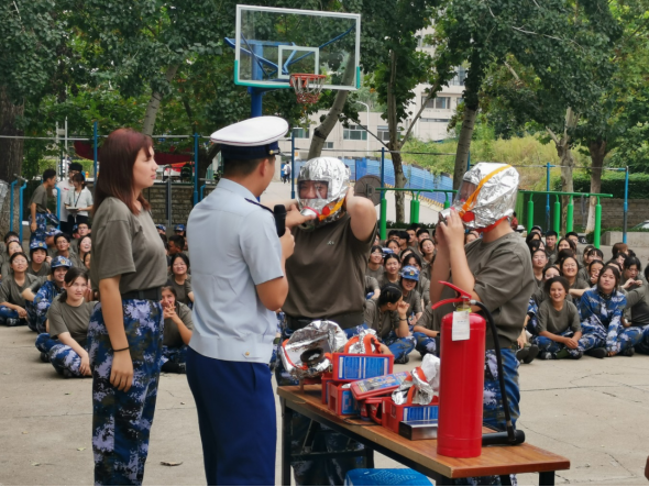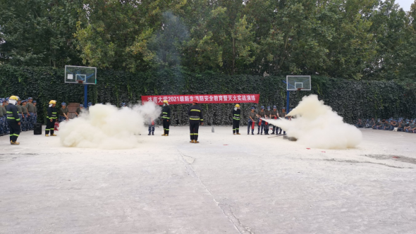 为提升2021级新生消防安全意识,学习日常防火知识,掌握必备的灭火逃生技能,学校学生工作处、安全管理处在新生军训期间,专门开设了消防安全教育与实践课,让新生在踏入校门之初即接受消防安全教育,树立消防安全观念,上紧防火安全这根弦。