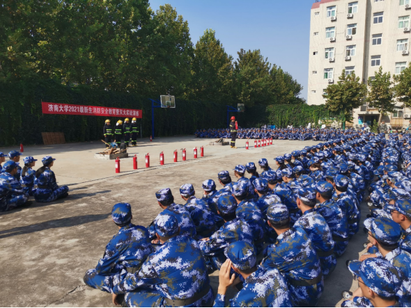 此次消防安全教育与灭火实战演练从9月16日开始至18日结束,历时3天时间,共分7个批次组织实施,累计8000余名新生参加。消防安全教育环节,安全管理处邀请济南市市中区消防救援大队苗伯彦警官、济南市消防救援支队朱俊浩警官进行授课。苗警官与朱警官结合自身消防救援工作实际与大量火灾事故案例,给新生们上了一堂生动的消防安全知识课。灭火实战环节,安全管理处向同学们详细介绍了灭火器的使用方法与注意事项,分组组织同学使用灭火器灭火。同学们参与热情高涨,当熊熊烈火被扑灭之时,同学们由衷的爆发出阵阵掌声。逃生疏散环节,安全管理处在训练场设置了模拟烟雾逃生体验馆与仿真灭火体验馆,组织新生全员轮流参与体验。通过身临其境的感受火灾真实场景,仿真与实战灭火相结合,有效提升了同学们的疏散逃生与灭火实战能力。