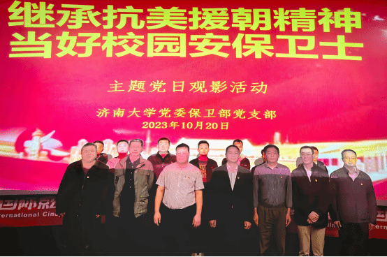 10月20日,在抗美援朝战争胜利70周年之际,党委保卫部党支部组织开展了以“继承抗美援朝精神 当好校园安保卫士”为主题的党日活动,观看爱国电影《志愿军:雄兵出击》。