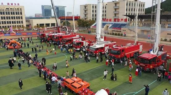 活动现场,各类先进的消防车辆和装备成为最大亮点。101米登高平台消防车、云梯消防车、压缩泡沫消防车等一排排整齐的红色消防车映入眼帘,震撼亮相。同学们纷纷排队登车“打卡”,亲身体验这些消防“重器”的魅力。同时,高精尖的消防装备也按照不同功能进行了集中展示,包括灭火救援、破拆顶撑、侦查检测、水域救援、高空山岳、通信保障等各类装备,令人目不暇接。