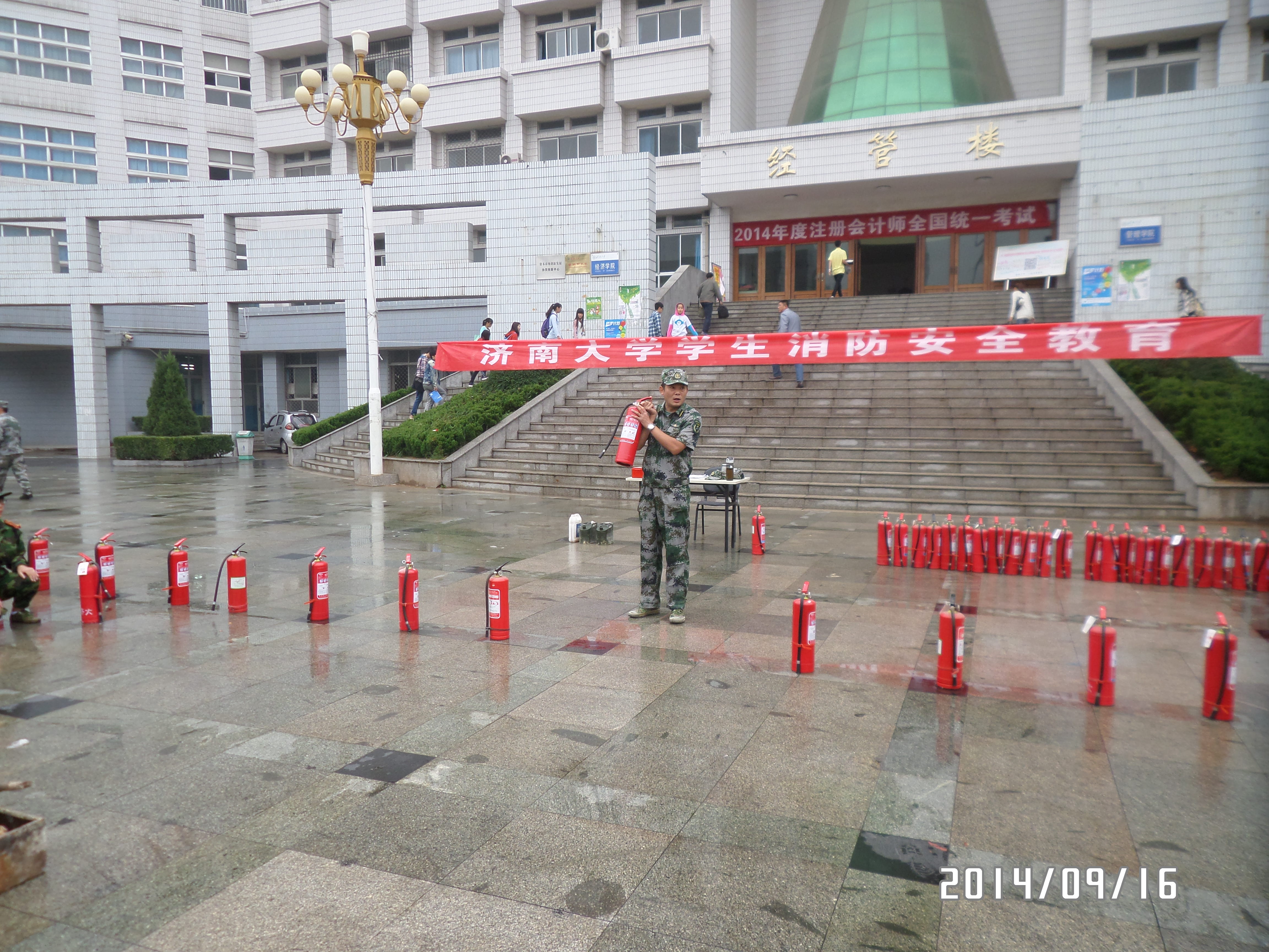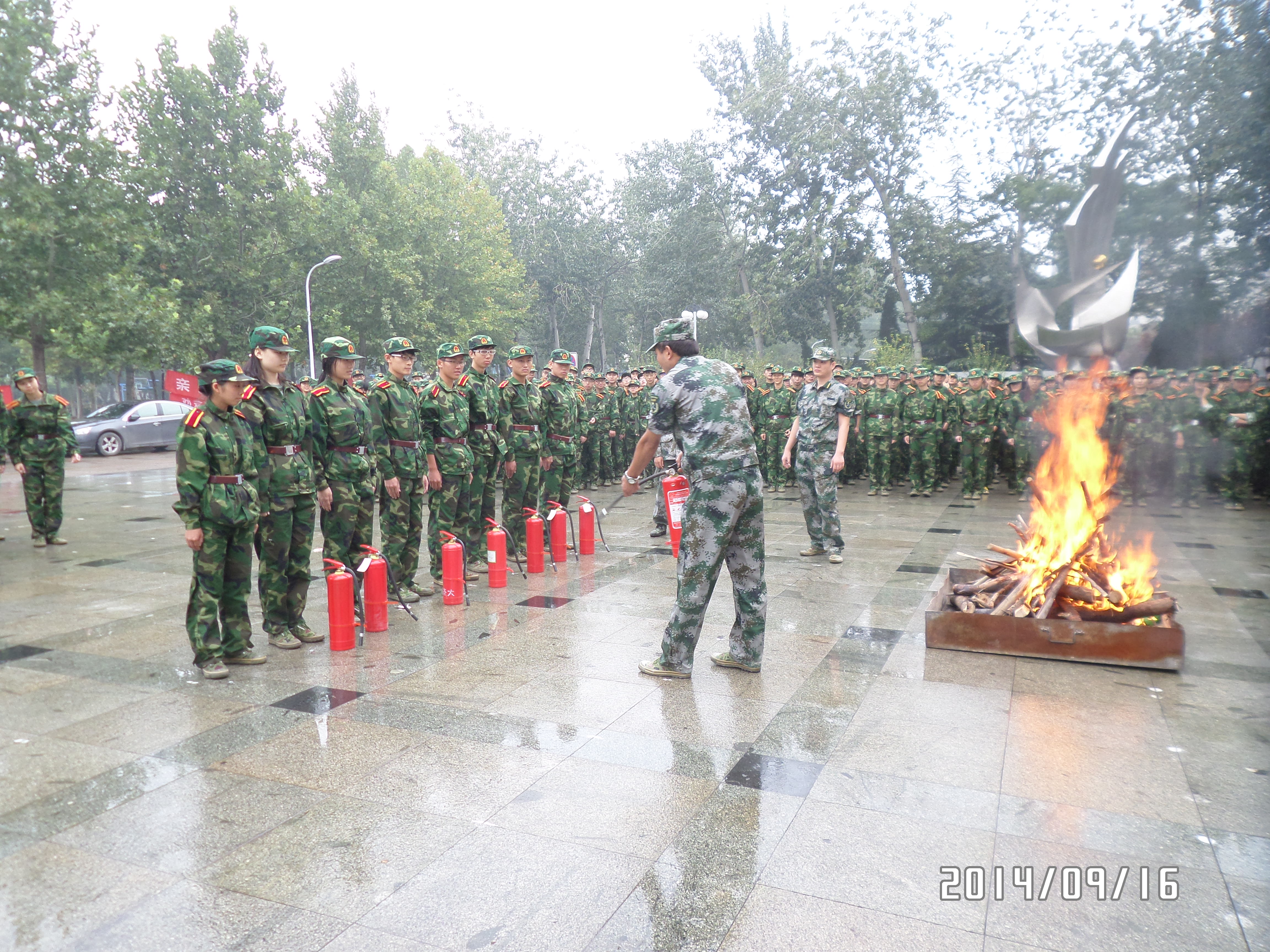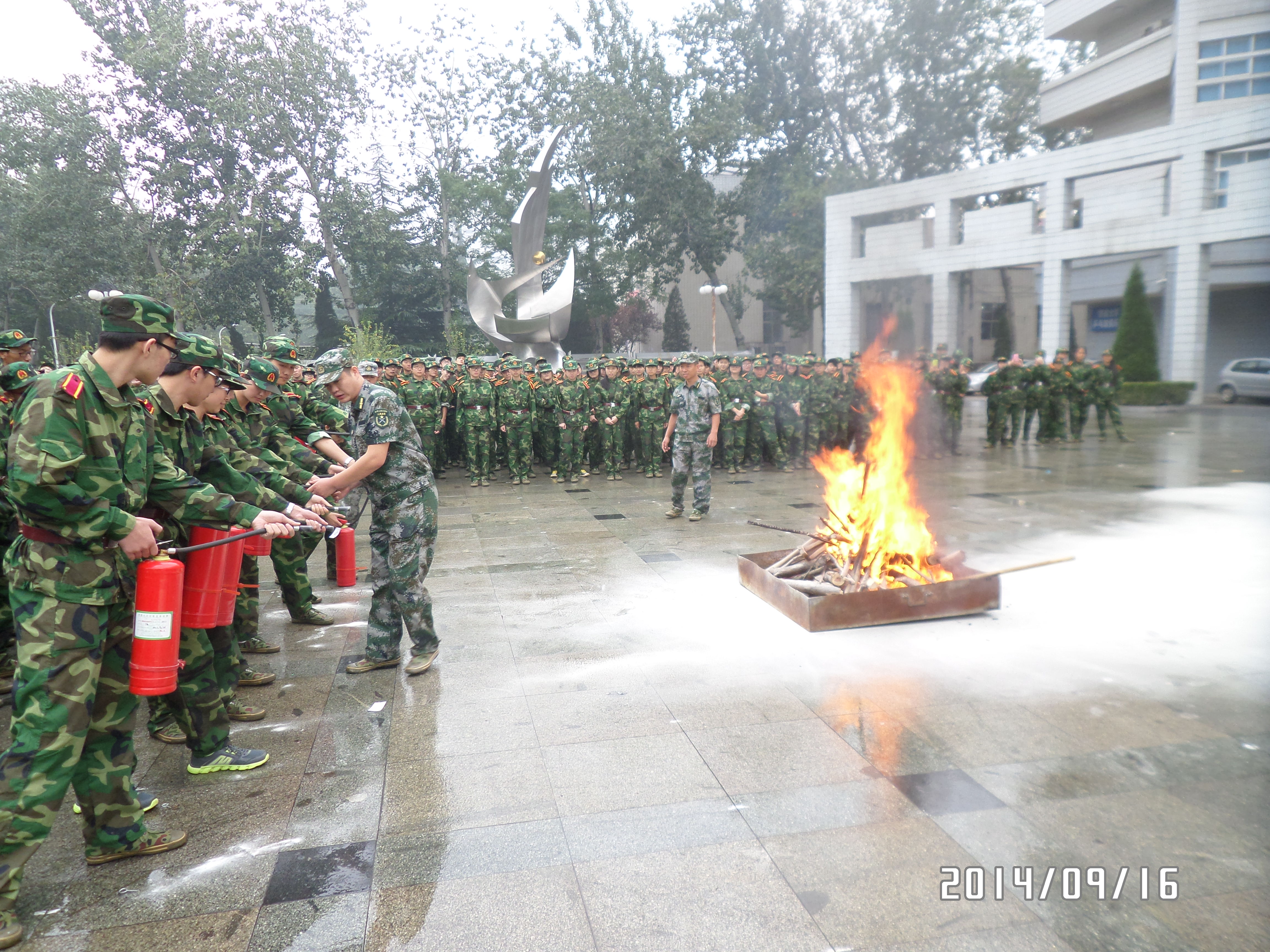 根据新生军训工作安排,今年军训期间加强学生的消防安全教育,要求做到每一名学生都接受一堂消防安全教育课,都要学会灭火器的使用方法,都要进行一次灭火操作演练。9月16号上午8:00整,消防科在舜耕校区为管理学院、经济学院、酒店管理学院的1331名新生进行了消防安全教育。首先消防科科长张韶春为大家讲解了消防安全基本常识,通过高校火灾实例重点解读了宿舍消防安全、教学楼、实验室的消防安全,以及遇到火灾危险怎样报警、怎样逃生自救,怎样使用灭火器和防毒面具。然后让每一名学生现场操作灭火器具及防毒面具,并进行了实战灭火操作演练。
