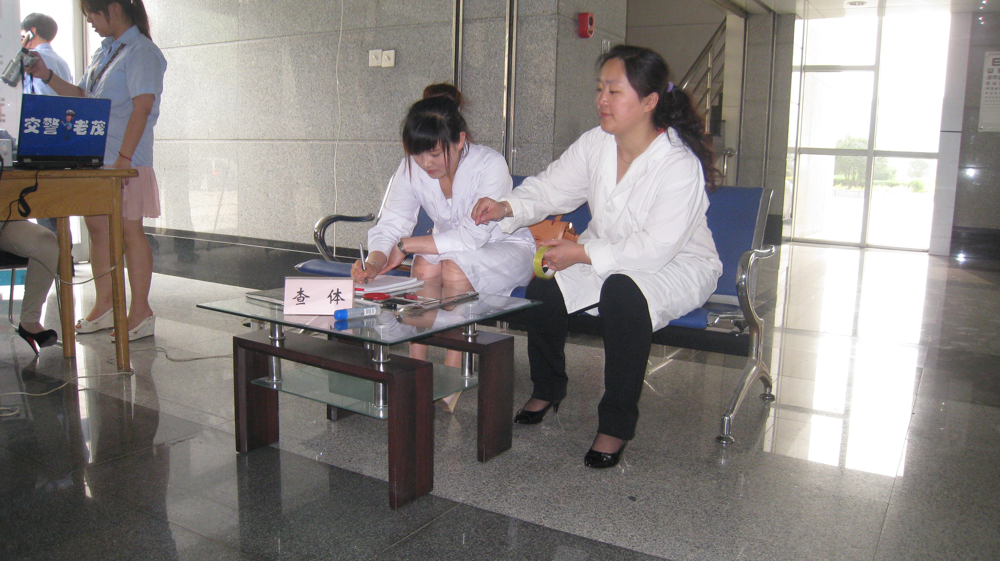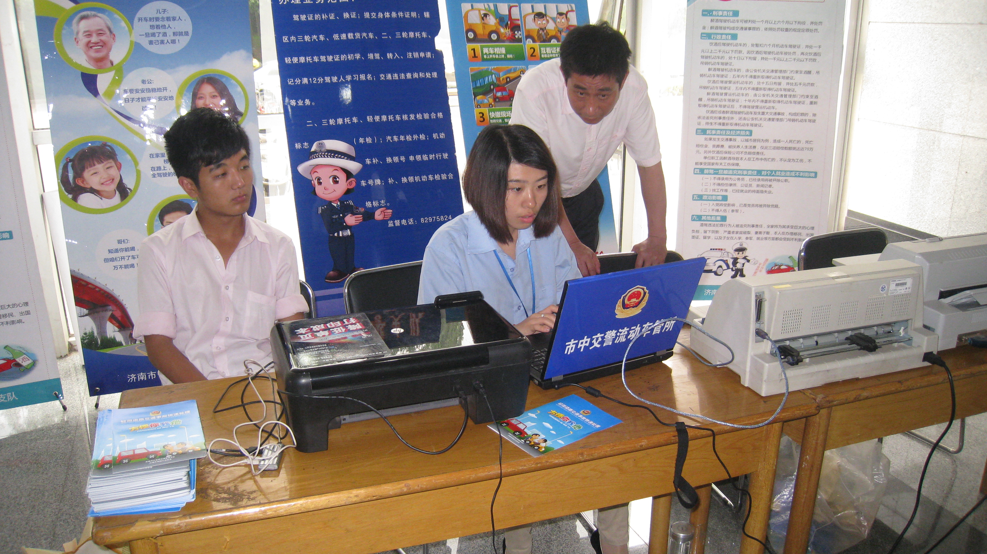 为方便我校教职员工,5月8日下午,市中区交警大队来校就驾驶员年审换证、照相、查体、交通违法查询与处理、车辆补牌、补证受理、交通安全等内容在行政办公楼一楼大厅开展了现场办公和宣传服务活动。
