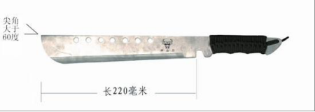 5.其他刀尖角度大于60度,刀身长度超过220毫米的各类单刃、双刃和多刃刀具(见图五)。