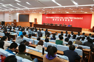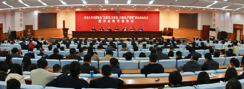 为进一步健全“党委领导、行政负责、党政同责、一岗双责”的大安全工作格局和强有力的安全督导督查体系,3月12日下午,学校在第一学术报告厅举行了校园安全“大教育、大普查、大整治、严管理”活动启动仪式暨安全教育报告会。学校安全工作委员会全体成员、全体学生工作人员、部分班主任代表和各部门各单位安全员300余人参加了会议。会议由副校长、安全工作委员会副主任王志主持。